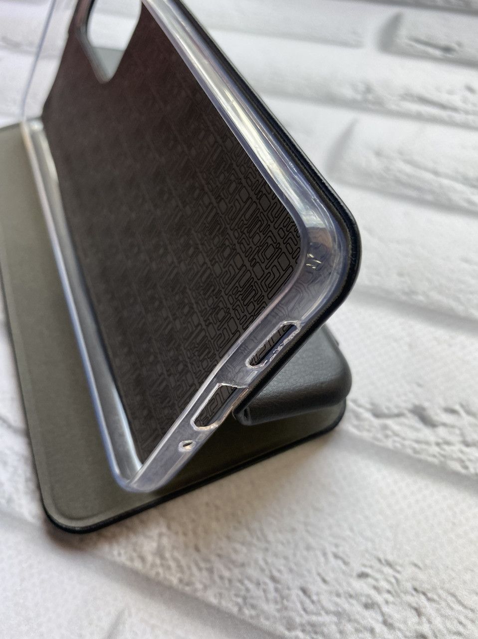 Внутрішня частина аксесуара виконана з TPU матеріалу, який повторює форму смартфона і надійно фіксує його. Зовнішнє оздоблення виконане з високоякісної еко-шкіри, яка гарантує тривалий термін експлуатації. На лицьовій стороні нанесено рельєфний принт, який додає чохлу вишуканості та індивідуальності. Передня панель чохла мінімізує ризики появи на екрані подряпин або тріщин у результаті падіння. Внутрішня частина накидної панелі виконана з м'якого матеріалу, який захищає екран мобільного пристрою. Аксесуар оснащений потужним магнітом, який запобігає відкриванню чохла-книжки при падінні. Матеріал стійкий до будь-яких хімічних речовин, не брудниться і не втрачає свого кольору на сонці.